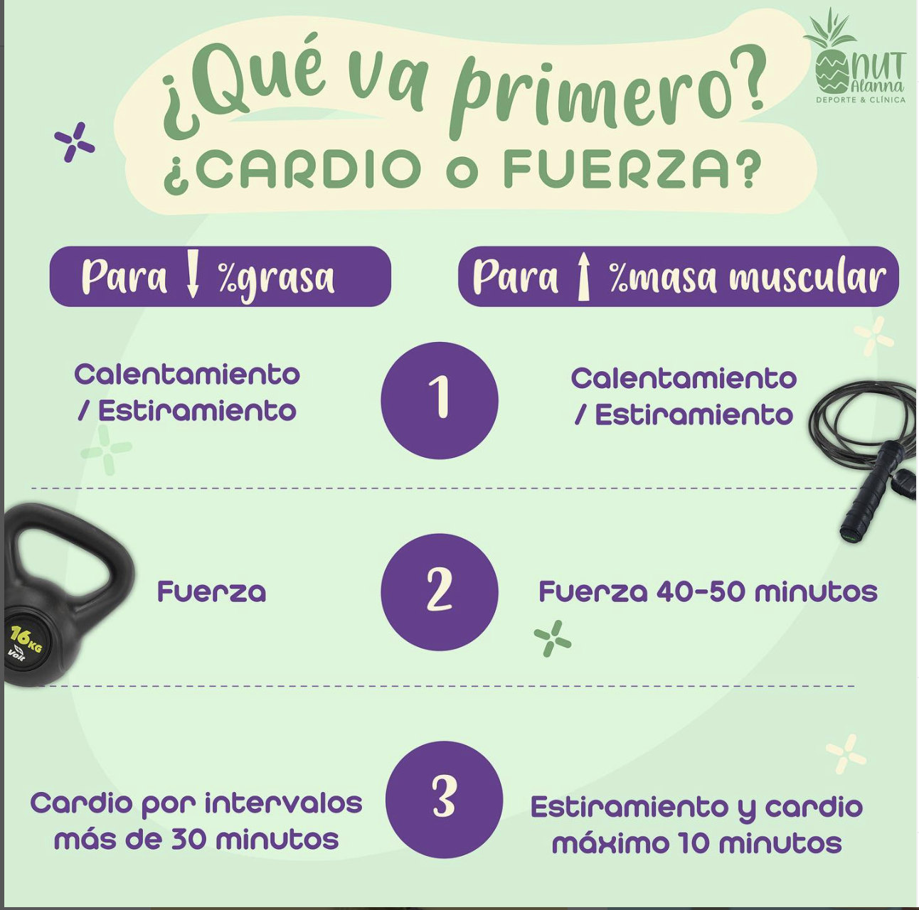 ¿Qué hago primero?🤔Cuando se quiere perder grasa, se piensa que debemos hacer exclusivamente cardio. ¡Grave error! 😳✨Esta creencia está porque el hacer cardio en otras palabras «quemas más calorías» pero es a corto plazo, es decir, el día y el momento que estás haciendo ejercicio cardiovascular.✨Cuando hablamos de masa muscular; cuando entrenas con peso, logras que largo plazo tu tasa metabólica aumente, en otras palabras «que se acelere el metabolismo” y que quemes más calorías